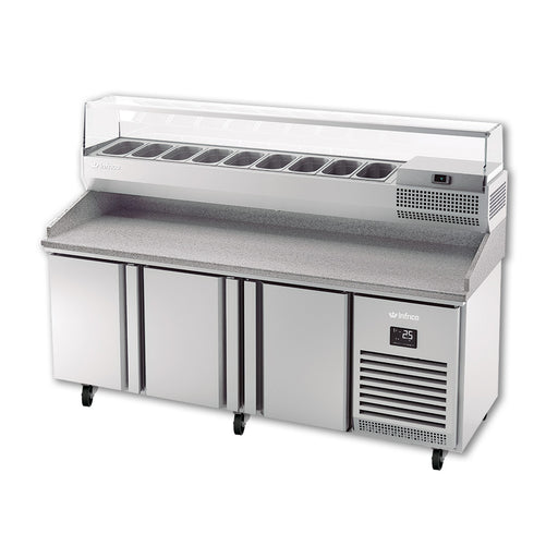 Infrico USA IRT-MPG1980 Granite Top Pizza Prep Table, Three Sections, Solid Doors