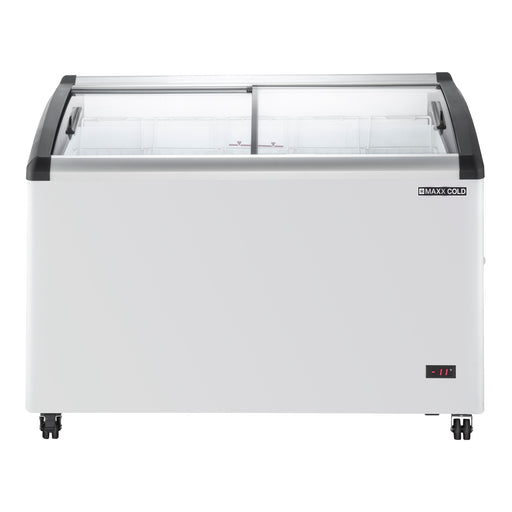 Maxx Cold Curved Glass Top Chest Freezer Display, 53.2"W, 9.96 cu. ft. Storage Capacity, Equipped with (6) Wire Baskets, in White (MXF54CHC-6)