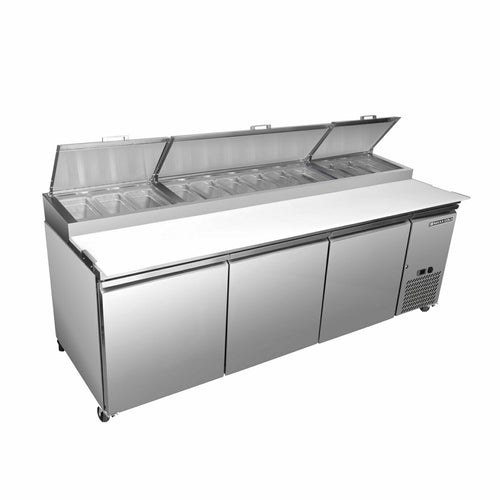MaxximumOriginal price $9,816.00Original price $9,816.00 - Original price $9,816.00Original price $9,816.00Current price $4,299.99$4,299.99 - $4,299.99Current price $4,299.99| /Maxx Cold Select Series Refrigerated Pizza Prep Table, three-section, 94"W, 30.87 cu. ft. storage capacity, accommodates (12) 1/3 or (24) 1/6 size ...