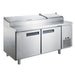 Pizza Prep Table, two-section, 70"W x 31-1/2"D x 43-7/8"H, self-contained side mount forced air refrigeration system, digital temperature control, 34°F (1°C) to 47°F (8°C) temperature range, automatic defrost, (2) solid self-closing doors, (2) adjustable shelves, (9) 1/3 size pans (included), stainless steel interior & exterior, 5" casters (2 braked), R290 refrigerant, 110v/60/1-ph, cETLus, ETL-Sanitation