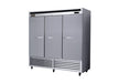 Kool-It Refrigerator, reach-in, three section, 72 cu.ft., 81"W x 31"D x 82-7/10"H, (3) solid stainless steel door with lock, open door alert, digital temperature display, stainless steel interior, (9) adjustable shelves, accommodates full-size sheet pans, stainless steel exterior, bottom mounted self-contained refrigeration, 4" casters (2) front braked, 5/8 HP, 115v/60/1-ph, 10.3 amps, ETL-Sanitation, cETLus,, ENERGY STAR®