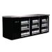 Serv-Ware - Refrigeration - 73 in. Glass Door Bar Back Unit - Dimensions: 73.1" W x 24.4" D x 36.2" H - Exterior Material: Black Painted Steel - Interior Material: Stainless Steel - Insulation Material: CFC Free Foam - Shelf Material: PVC Coated Wire - # of Shelves: 1 per Door - Voltage: 115 - Amps: 3 - Hz: 60 - Phase: 1 - Temperature Range: 33°F – 41°F - Refrigerant + Charge oz.: R290 / 4.59 oz. - BTU/H: 1771 - Defrosting: Every 6 Hours - Horsepower: 3/7 - Storage Capacity: 17.2 cu. ft. - Warranty - Parts on Labor on Entire Unit: 3 Years - Warranty - Compressor, Part Only: 5 Years