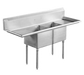 Economy Series Sink, two compartment, 72"W x 23-1/2"D x 45-1/2"H, 18/304 stainless steel, 18" wide x 18" front-to-back x 12" deep compartments, 18" drainboards on left & right, 11-3/4"H backsplash, 8" OC splash mount faucet holes, raised rolled edges on front & sides, 3-1/2" basket drains with 1-1/2" outlets, galvanized legs with adjustable plastic bullet feet, NSF