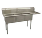 Economy Series Sink, three compartment, 68-1/2"W x 25-1/2"D x 45-1/2"H, 18/304 stainless steel, (3) 16" wide x 20" front-to-back x 12" deep compartments, 18" drainboard on right, 11-3/4"H backsplash, 8" OC splash mount faucet holes, raised rolled edges on front & sides, 3-1/2" basket drains with 1-1/2" outlets, stainless steel gussets, galvanized legs with adjustable plastic bullet feet, NSF