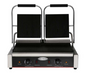 Serv-Ware - Electric Cooking - Double Panini Grill - Grooved Top & Bottom - Dimensions: 22.44" W x 14.56" D x 8.26" H - Temperature Range: 120°F – 570°F - Amps: 15 - Voltage: 115 - Hz: 60 - Phase: 1 - Watts: 1750 - Materials: Stainless steel construction with cast iron plates - Warranty: 6 Months