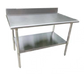 Deluxe Series Work Table, 36"W x 30"D x 35"H, 16/304 stainless steel top with 5"H backsplash, 18/430 stainless steel under shelf, stainless steel gussets & legs, adjustable feet, NSF