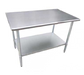 Deluxe Series Work Table, 72"W x 30"D x 35"H, 16/304 stainless steel top, stainless steel center support channel, 18/430 stainless steel under shelf, stainless steel gussets & legs, adjustable feet, NSF