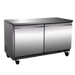Freezer, undercounter, two-section, 61"W x 29-9/10"D x 35-1/2"H, 15.5 cu. ft. capacity, (2) self-closing solid doors, full length handle, (1) epoxy-coated wire shelf per door, electronic thermostat, LED digital display, auto defrosting & evaporation, stainless steel front & sides, ABS interior liner with stainless steel floor, (4) casters (2 braked), rear mounted self-contained refrigeration, cULus Classified, UL EPH Classified, CE
